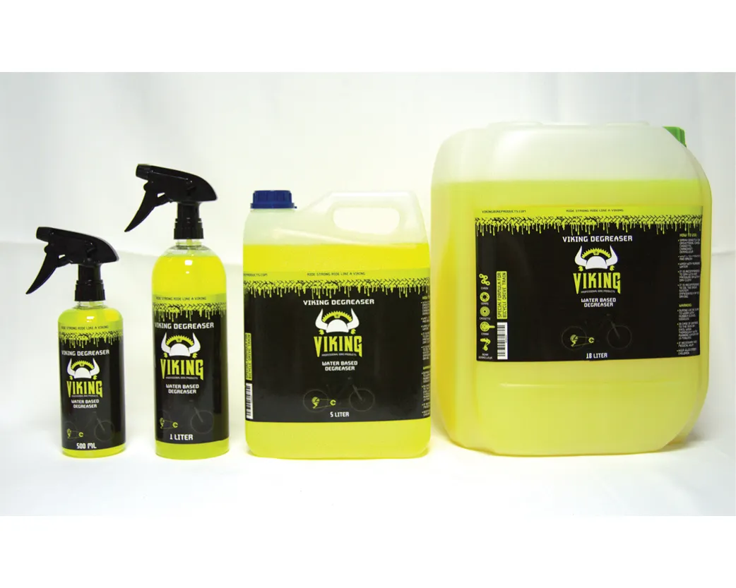 VIKING DEGRISAER נוסחה יחודית אשר מנקה בקלות וביעילות שומנים קשים, בוץ ,אבק, שאריות דבק ועוד..... קסטה, שרשרת, מעבירי הילוכים וקראנק. מסיר שומנים איכותי ועוצמתי לניקוי מערכות ההינע של האופניים.
